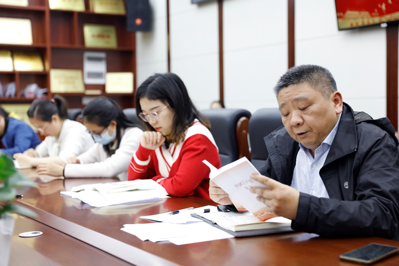 在党史学习教育专题学习中,田彬同志带领党员同志对《中国共产党简史》第八章第九部分第三节“推进党风廉政建设与反腐败斗争”和第九章第八部分第三节“扎实推进惩治和预防腐败体系的建立”进行了导读学习;组织委员邱静红领读了《习近平新时代中国特色社会主义思想学习问答》第四章第 47 节“为什么要把纪律的螺丝拧得紧而又紧”。