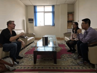 2018年4月21日上午,台湾明道大学时尚造型学系助理教授、纺织和时尚顾问 Mark Sussman到纺织与服装工程系进行交流,纺织与服装工程系系主任郭荣辉、副系主任阎斌、周怡副教授参加。Mark Sussman介绍台湾明道大学及时尚造型学系的基本情况、人才培养、学生就业等,同时,分享他在美国芝加哥20多年和台湾的纺织品和服装市场经验及创业经验,并介绍他在美国指导学生创业及参加竞赛的经验,鼓励我校纺织服装专业学生到美国和台湾高校及大品牌公司进行交流、创业培训及就业。郭荣辉主任介绍了AV研究所