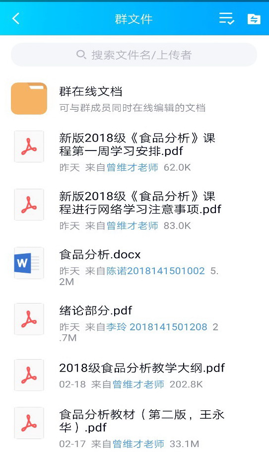《食品分析》任课教师曾维才副教授采用“网络慕课资�+QQ云课堂”的方式,进行第一次在线课程的讲授,与学生开展良性互动与答疑,并通过在线发布作业、思考题等方式引导学生利用课余加深对知识点的理解,学生反响良好。《革制品工艺学》任课教师徐波老师通过钉钉平台,将屏幕共享与视频展示有效结合起来,通过语音、文字等方式组织学生开展热烈讨论,课堂氛围生动活泼。《食品工厂设计与环境保护》任课教师冉旭副教授采用超星学习通协�QQ群的模式开展教学,课前发布了平台使用说明、电子教材、课程简介、具体授课方式、课程进度安排、课程考核方式、课程资源等,保障该门线上课程有序开展。《中国酒工艺学》任课教师张文学教授提前录制好授课视频,采用超星学习通协�QQ群在线分享的授课方式,开展实时线上教学,整体效果良好。《环境生物技术》任课教师汤华钊老师依托腾讯会议协同QQ群的方式,有效调动出学生的参与积极性。《纺织材料与产品科技进展》任课教师姚果老师依托超星学习通协�QQ群的方式进行授课,并通过百度云盘把授课视屏提前共享给学生,针对平台崩溃做好充足的预案,有效保证了线上教学的流畅性�