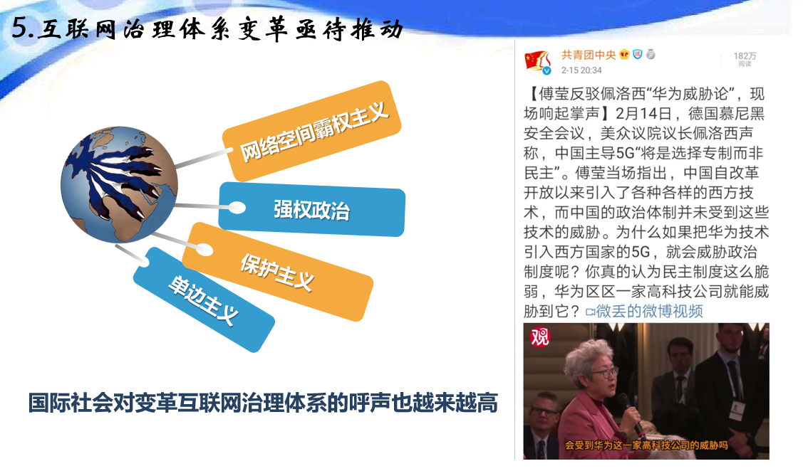 学生事务办公室主任、2019级辅导员贺婷老师就专题《携手构建网络空间命运共同体》进行说课。以一个短视频——第六届世界互联网会上5G技术的展演为导入,让同学们了解下互联网大会及历届互联网大会主题。进而从互联网给人类社会带来深刻变革、网络空间面临前所未有的新挑战、网络空间命运共同体的中国方案和中国智慧三个方面讲解此专题。经大家研讨后确定,为了帮助同学们理解和达到更好的教学效果,在教学中将社会热点与专题内容相结合。如,通过疫情期间的“云监工”、无人机巡逻、遥控车网购、“云课堂”、“网红主播”教师、李文亮医生事件等实例说明网络与人们的生活密不可分;通过斯诺登事件、中国驻南斯拉夫大使馆被炸事件、德国慕尼黑安全会议上傅莹怒怼佩洛西视频等实例讲解网络空间面临前所未有的新挑战。在研讨中大家一致认为作为资深网民的同学们对此有更多感悟,且此讲内容与大家的生活密切相关,所以在教学中增加更多的学生讨论和分享的环节。