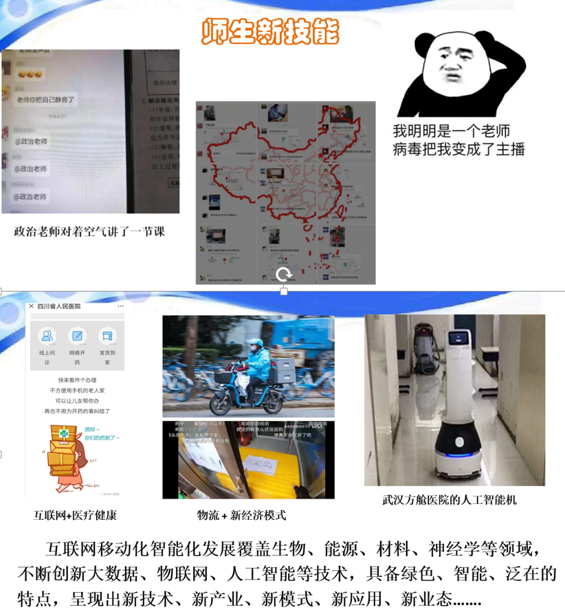 结合2020年疫情防控的特殊背景与学院疫情防控的实际情况,本次课程加入了抗疫主题内容——党的领导是打赢疫情防控阻击战的坚强政治保证。主题讲解中邀请武汉同学分享疫情期间的亲身体验和感触,并引入在线同学的讨论,意在让同学们更为直观的了解疫情,特别是处在疫情暴风眼的武汉的情况,从而从党的领导、社会治理、民生、人性等多方面去看待疫情。