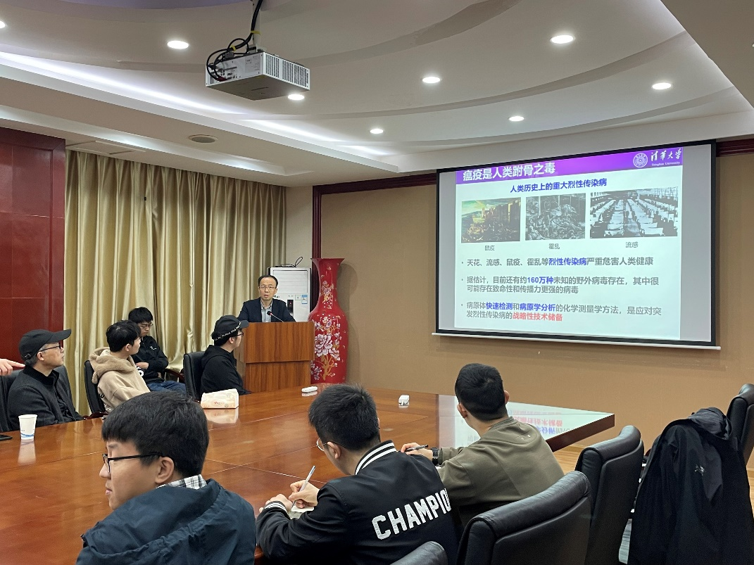 邀请,中国科学院院士、清华大学李景虹教授在皮革楼209会议室为全院师生作了题为“重大突发公共卫生事件中的化学测量学”的学术报告。报告会由AV研究所