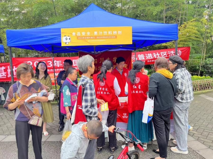 为推进成都市社区科普宣传教育工作,丰富社区居民科普文化生活,提升社区居民的科学素养,轻工科学与工程学院食品系师生�2023�9�23日在��街道清波社区广场开�“应急安全与生命健康科普进社区”活动�