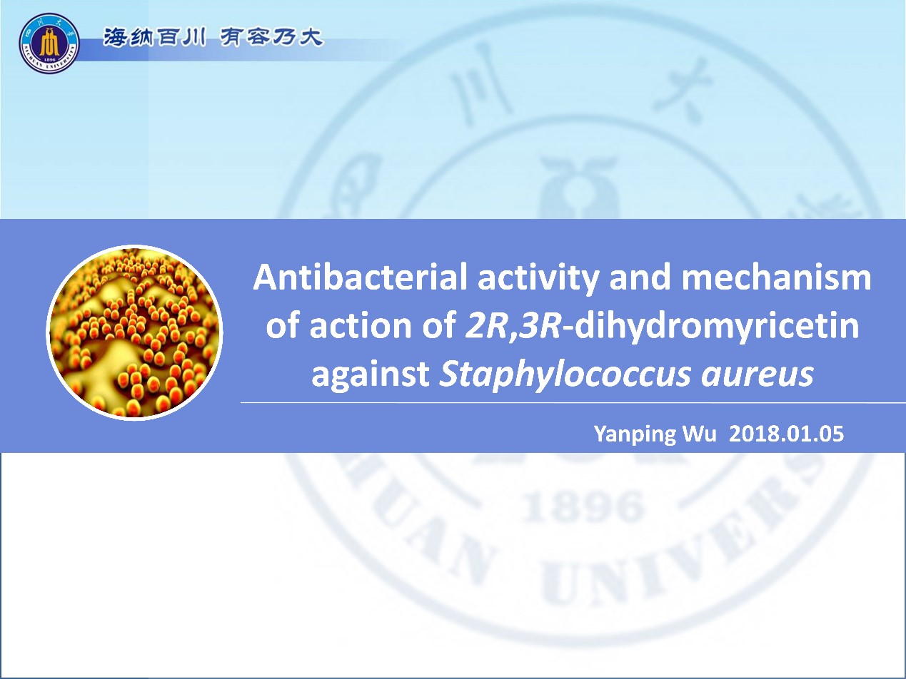 相关学科做出了积极宣传,并为日后双方开展学科间的研究合作奠定了一定基础。吴艳萍博士的研究领域是食品安全学,其在高鸿教授和钟凯老师的指导下已在Food Chemistry、Journal of Functional Foods、Molecules、Bioscience Biotechnology & Biochemistry等期刊上发表6篇SCI论文,其中在《Food Chemistry》(IF 4.529,2016年)发表的论文:A dual antibacterial mechanism involved in membrane disruption and DNA binding of2R,3R-dihydromyricetin from pine needles ofCedrus deodaraagainstStaphylococcus aureus(Food Chemistry, 2017, 218: 463-470)为食品科学与工程研究领域1%高被引用文章。
