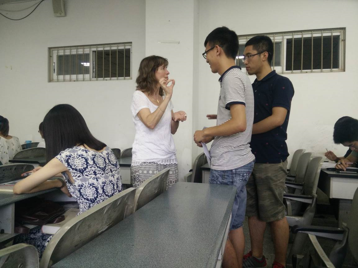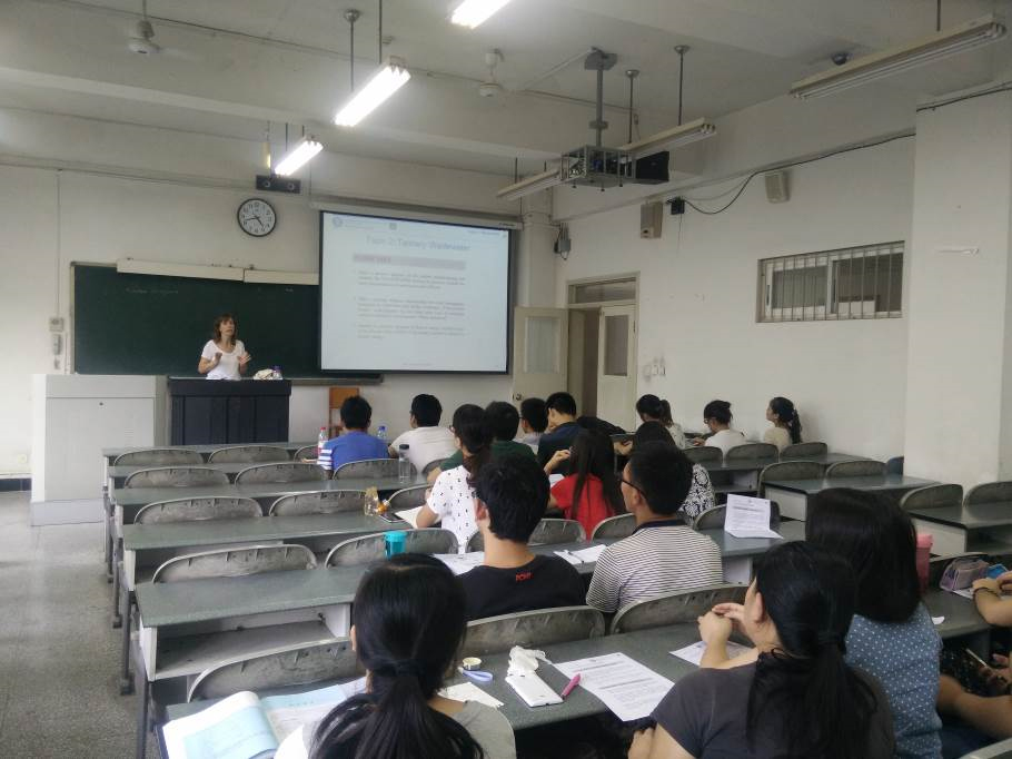 望江校区基教楼A311讲学,为选课的本科生介绍了自己的研究方向和国际实践周课程的主要内容。Rita教授以“When environmental problems begin”为引子,结合自己在化学工程和环境管理、特别是在生命周期评价(LCA)领域的研究,为在座学生讲述制革工业中环境问题的产生来源、制革过程中固体废弃物和废水的环境影响现状及其现有解决方案和配套技术。在课程的教学过程中,Rita教授采用流程图的方式将课件教学内容与板书相结合,并辅以课堂练习,以其清晰而充实的教学方式,为每一同学悉心讲解课件中出现的专业名词和术语以及背后的环境专业知识。在与同学们的课外交流,Rita教授以其亲和而富有耐心的方式,结合自己多年的教学经验,积极回答每位同学提出各种问题。据悉,Rita教授此次的课程将持续到7月15日,在此期间按照她的课程安排,会让同学们参与到利用LCA工具计算环境影响因子的课堂练习,这将进一步扩充同学们的专业技能,并提升同学们运用新工具和新方法解决问题的能力。通过这次“实践与国际课程周”活动,AV研究所
