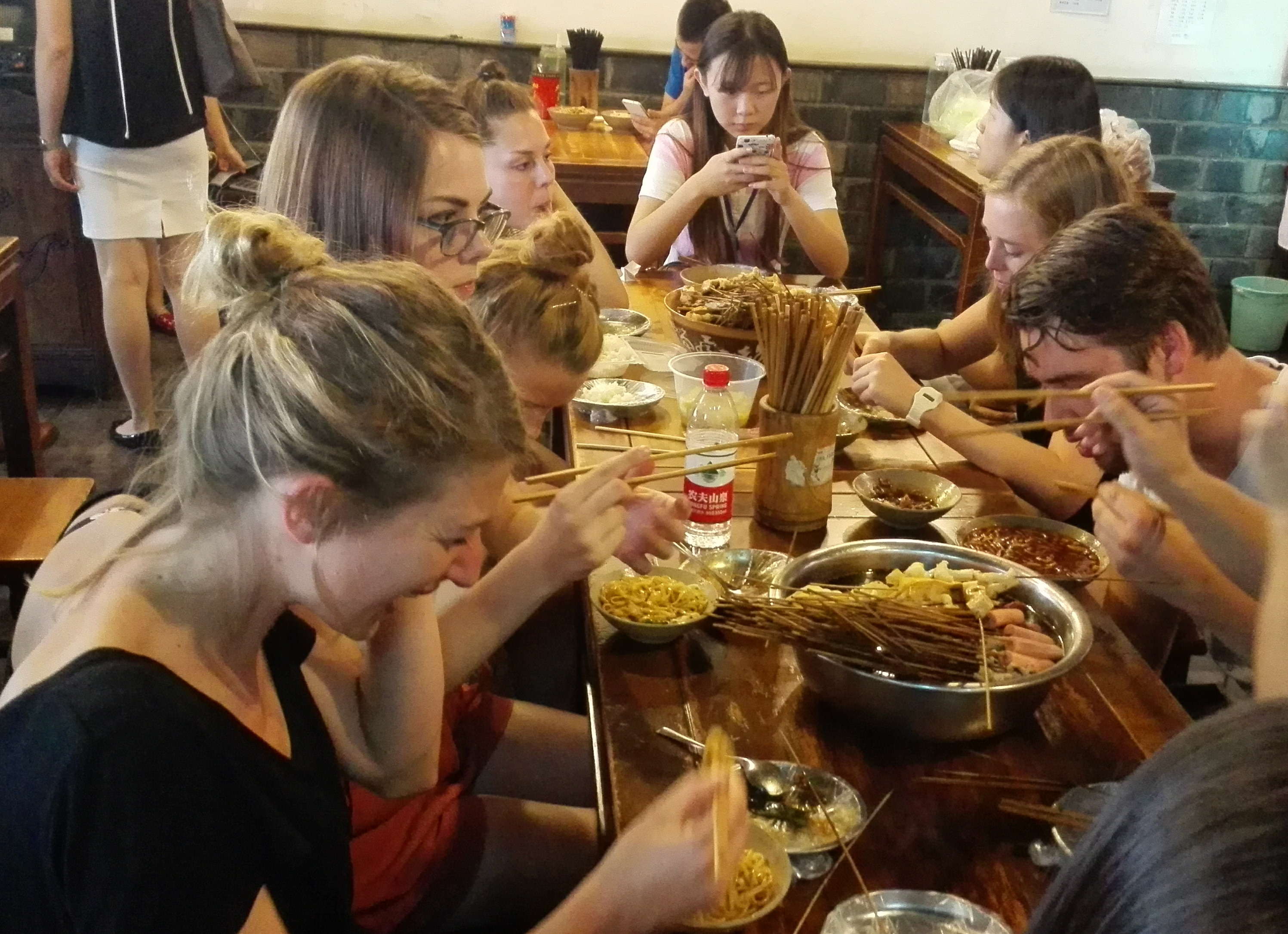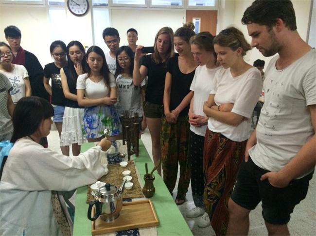 轻纺与食品学院交流营开营仪式,赵毅书记、刘晓虎副书记、何强副院长、肖凯副院长、张皋鹏副教授和祝蔚老师参加了仪式,何强副院长代表学院致辞,介绍了学院的基本情况和交流营的大致安排,并祝愿营员们在这期间能有所收获。简短的开营仪式后,中外营员们进行了风采展示,通过图片、视频以及实物展示,将自己学习和研究的课题做了介绍,让彼此对专业学习情况有一个大致的了解。下午,由服装与服饰专业负责人张皋鹏副教授给大家做了精彩的《西南少数民族服饰》讲座,图文并茂,营员们表示收获很大。课程结束后,荷方的营员还去参观了IFS和春熙路,品尝了本地小吃。晚上,在江安校区综合楼B105来自川大的同学们为荷兰的小伙伴们准备了一场中国风Party。唯美的汉服表演将我们带回到几千年那个神奇的王朝,女子款款而出,男子巍巍而立,一场视觉的盛宴缓缓展开;优雅的茶艺展示让荷兰的小伙伴们惊叹不已,他们静静地聆听着悠悠古琴,品味着茶香余绕唇间的淡淡滋味;欢乐的电影模仿环节一下子将活动的气氛拉到了小高潮,浪漫的泰坦尼克悄然响起,同学们深情的表演让人拍手称快;皮影《佳人曲》更是另一波的中国风来袭,一则凄美的爱情故事,让在场的人都感动不已。川大的同学们卖力地表演,只为将最好的一面展示给国外友人。美丽俏佳人,情深帝王心,小小的皮影生动地为我们再现了那个属于历史的美好回忆;一曲周杰伦的《皮影戏》顿时high爆全场,灵动的小人物伴着欢快的旋律在荧幕上跳着disco,同学们好奇不已,纷纷上来比划,川大的同学们热情地为他们讲解,现场的气氛达到高潮;最后的欢愉时刻,川大的同学为荷兰的小伙伴们一一着上汉装,作揖拜礼,回味古味。快乐的Party降下帷幕,然而留在同学们之间的情谊却将永存。