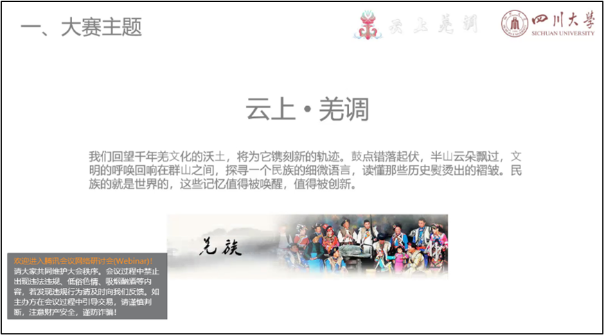 团委学生会、时装模特协会、服饰文化与非遗保护协会承办的学科竞赛,以学院服装与服饰设计专业为中心向全校时尚爱好者提供展示风采的创作平台。大赛以“云上·羌调”为主题,呼吁参赛选手们回望千年羌族文化的沃土,并为其镌刻新的轨迹。