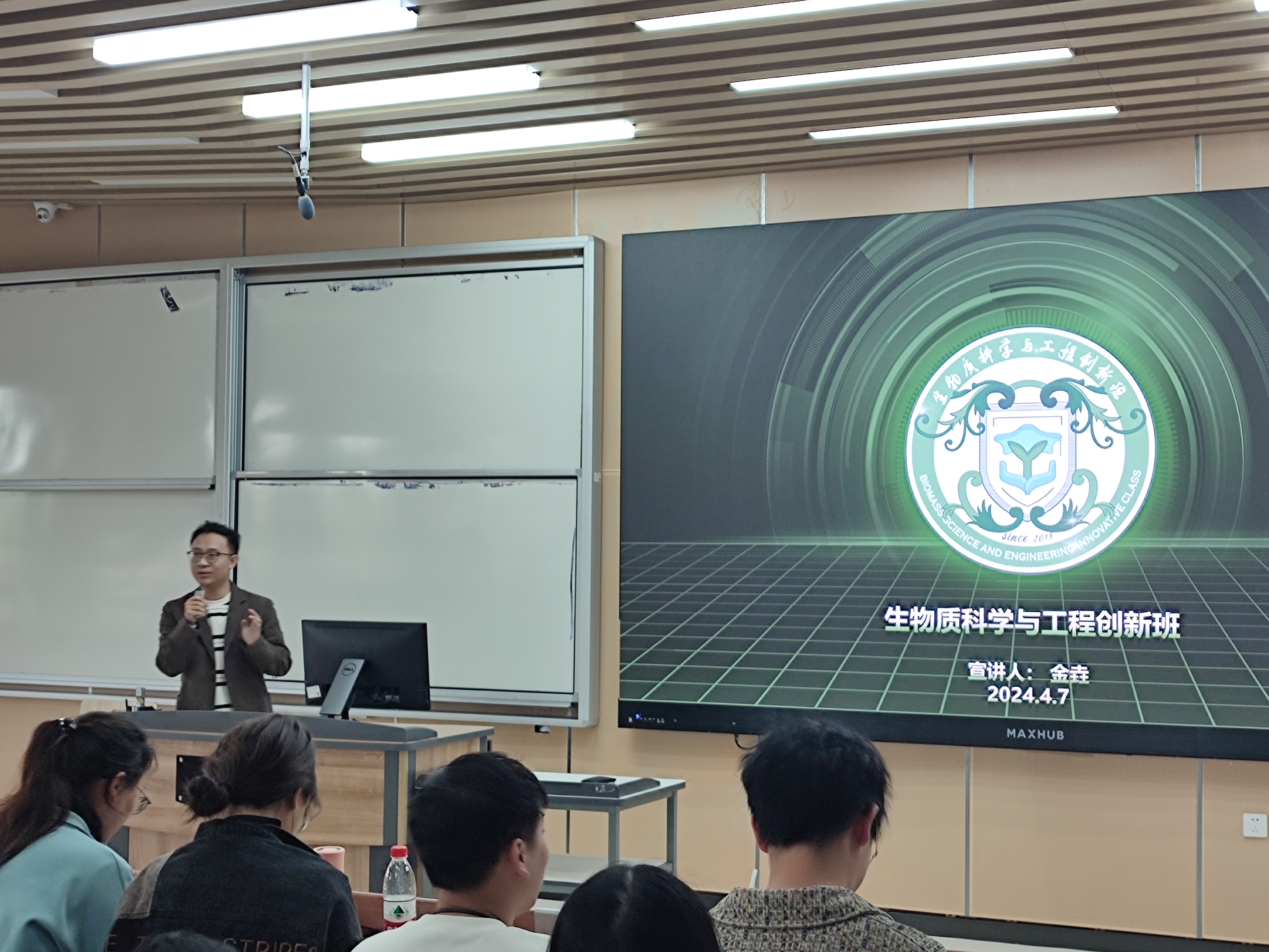 最后,生物质科学与工程创新班金垚副教授从学科竞赛、大众宣讲、未来深造和就业等方面说明了创新班的人才培养计划及班级资源优势。他首先提出了时代的新需求——“碳中和”,随后又展现了创新班在川大的引领作用与优越师资,不仅有小班教学的教学相长、互帮互助,更有创新班特别提供的各类终生有益的教学,还辅以创新班学子们自行组建的“互助关系网”,让接触与咨询优秀的学长学姐更加方便。