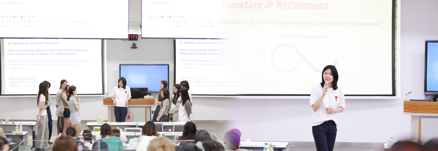 聚焦“时尚可持续未来”这一全球议题,课程以设计思维的五大阶段“共情—定义—构思—原型—测试”为主线,引导学生从气候危机、技术迭代、零浪费系统等多维视角重新定义服装与服饰的价值。