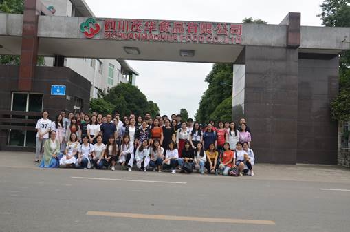 2018615日,当第一缕阳光洒在地平线时,食品专业的同学就整理好行囊,准备出发前往四川茂华食品有限公司进行参观实习。企业参观是食品工程系本科教学计划专业课程的重要内容,本次参观也是继徽记、中储粮企业、新希望乳业、旺丰食品参观后的第五站。早上8:30,载着我们的大巴准时发车,在路上颠簸了近两个小时,我们终于到达了我们的目的地。
