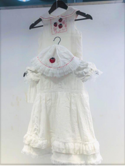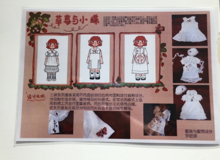 以上系列连衣�设计师罗屹瑶草莓为主�白色为底色,多种不同质地的同色面辅料�红线刺绣绗缝手法,使系列�服饰主题突出层次分明小女孩纯�可爱的特�充分展现