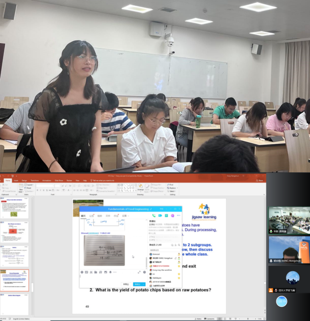 望江校区基础教学楼A320教室线上、线下同步开展,食品工程系教研室主任段飞霞老师、助教莫晓慧及2019级食品科学与工程专业学生参加。