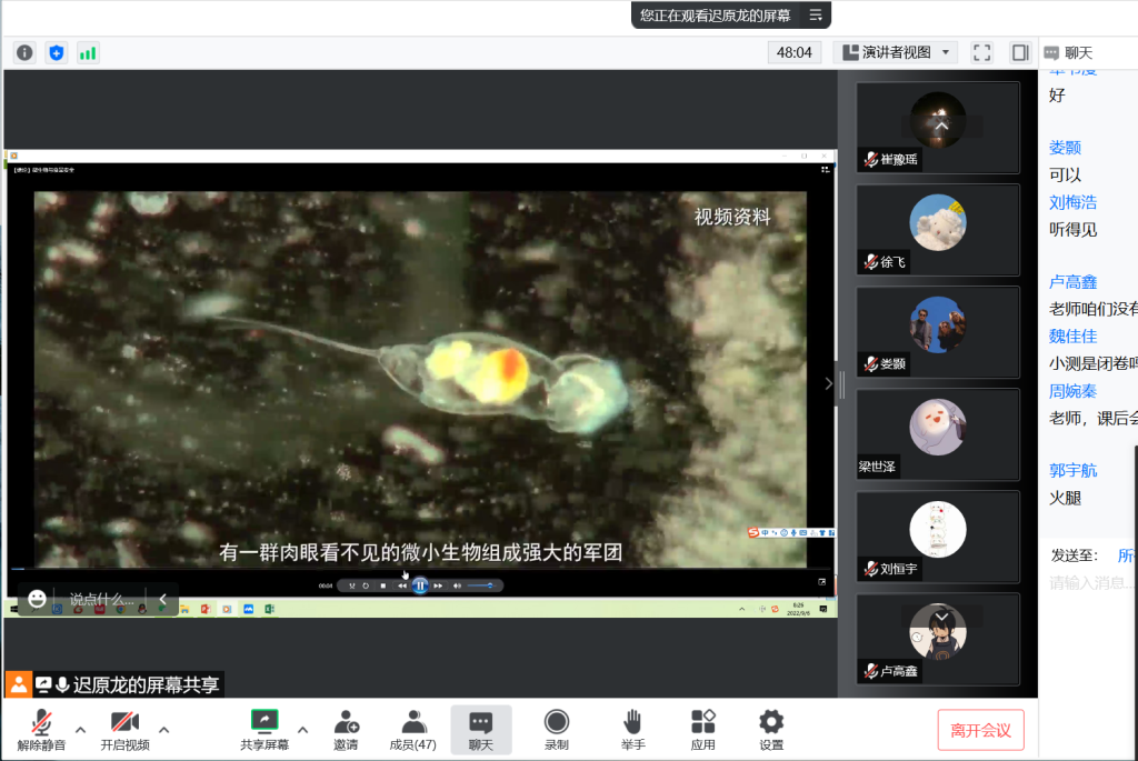 从开学教学检查情况来看,学院线上教学秩序总体良好,教师精神饱满,学生积极主动,大部分课程到课率达100%,甚至吸引到其他专业的学生试听。在平台的使用上�QQ群和腾讯会议软件操作简便,授课过程流畅,使用比例高�95.5%。任课老师采用多种形式的教学手段进行有效互动,学生参与度高。如:何强教授的《食品化学》课程,设置“联席主持人”,协助任课老师进行线上教学准备与学生到课情况检查;周荣清教授的《生物反应工程》课程,到课�100%,课堂秩序良好,周教授站在行业的高度,为学生上了生动的生物反应工程第一课,有利于引导学生的学习兴趣和对专业的热爱;迟原龙副教授的《食品微生物学》课程,采用线上签到,学生到课率高、教学秩序良好,观看短视频增加学生对知识的感性认知,教师通过课堂提问与学生进行互动;时昱老师的《时装作品集制作》课程,问题设计巧妙,与学生互动良好,课堂氛围活跃等�