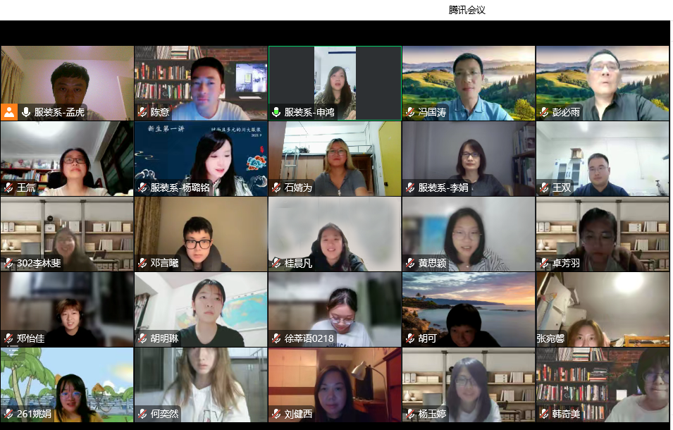 服装与服饰设计专业全体2022级新生以腾讯会议方式线上参加。出席活动的学院领导和老师有:AV研究所