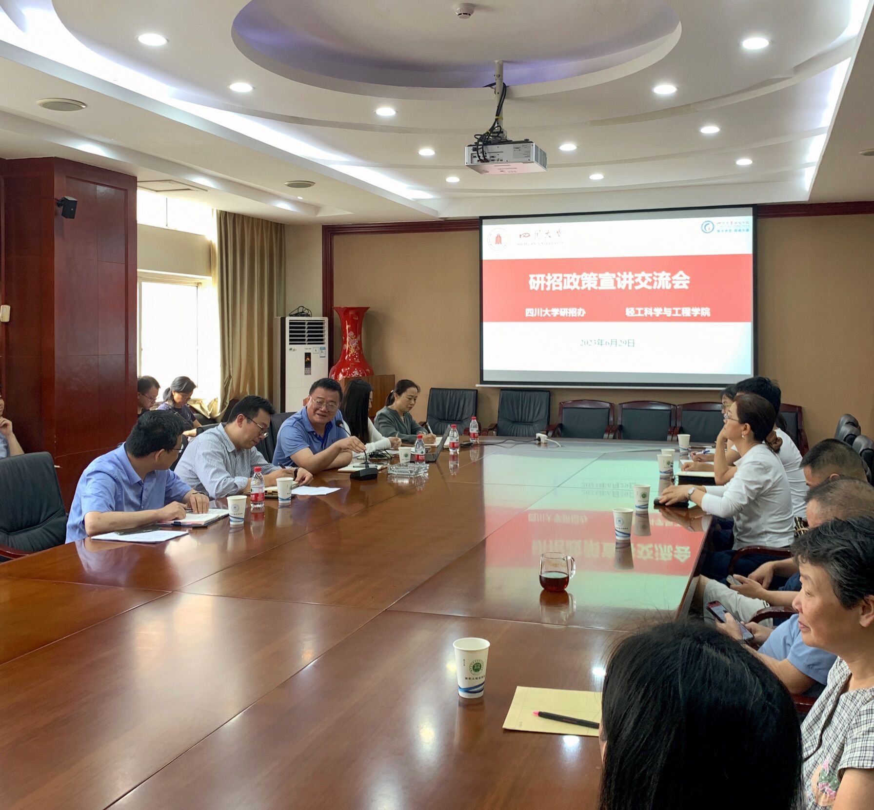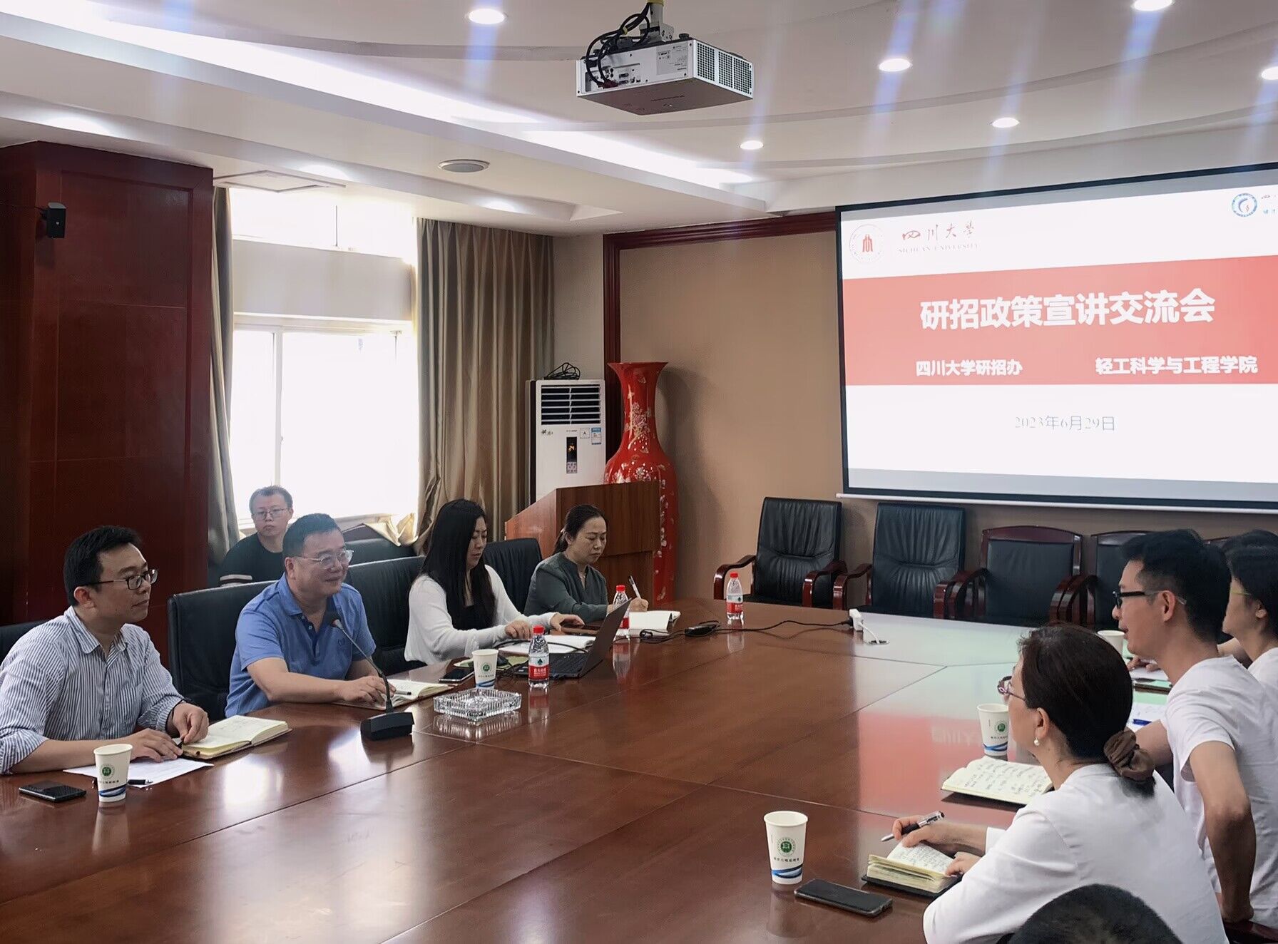 邀请研究生院招办刘猛主任在学院会议室举行了研究生招生政策宣讲交流会。轻工学院彭必雨院长、冯国涛副书记、迟原龙副院长、廖学品教授、研究生院招生办老师、学院硕博导和其他教学科研岗老师参加了会议。