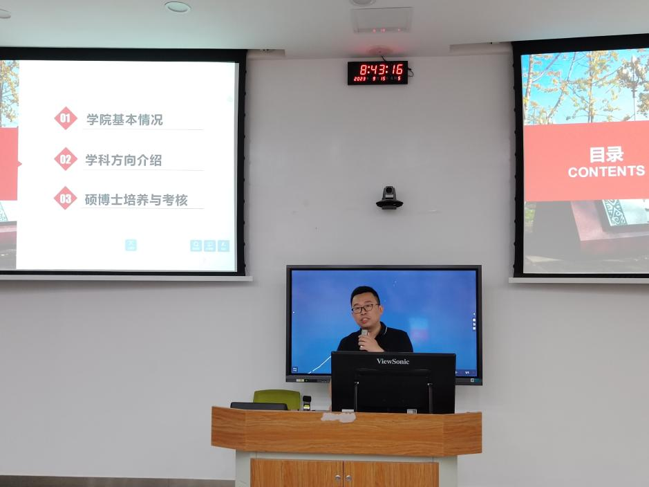 紧接着,分管研究生培养的迟原龙副院长向2023级研究生新同学从学院基本情况、学科发展方向以及硕博士研究生培养与考核情况三个方面进行了全面介绍。