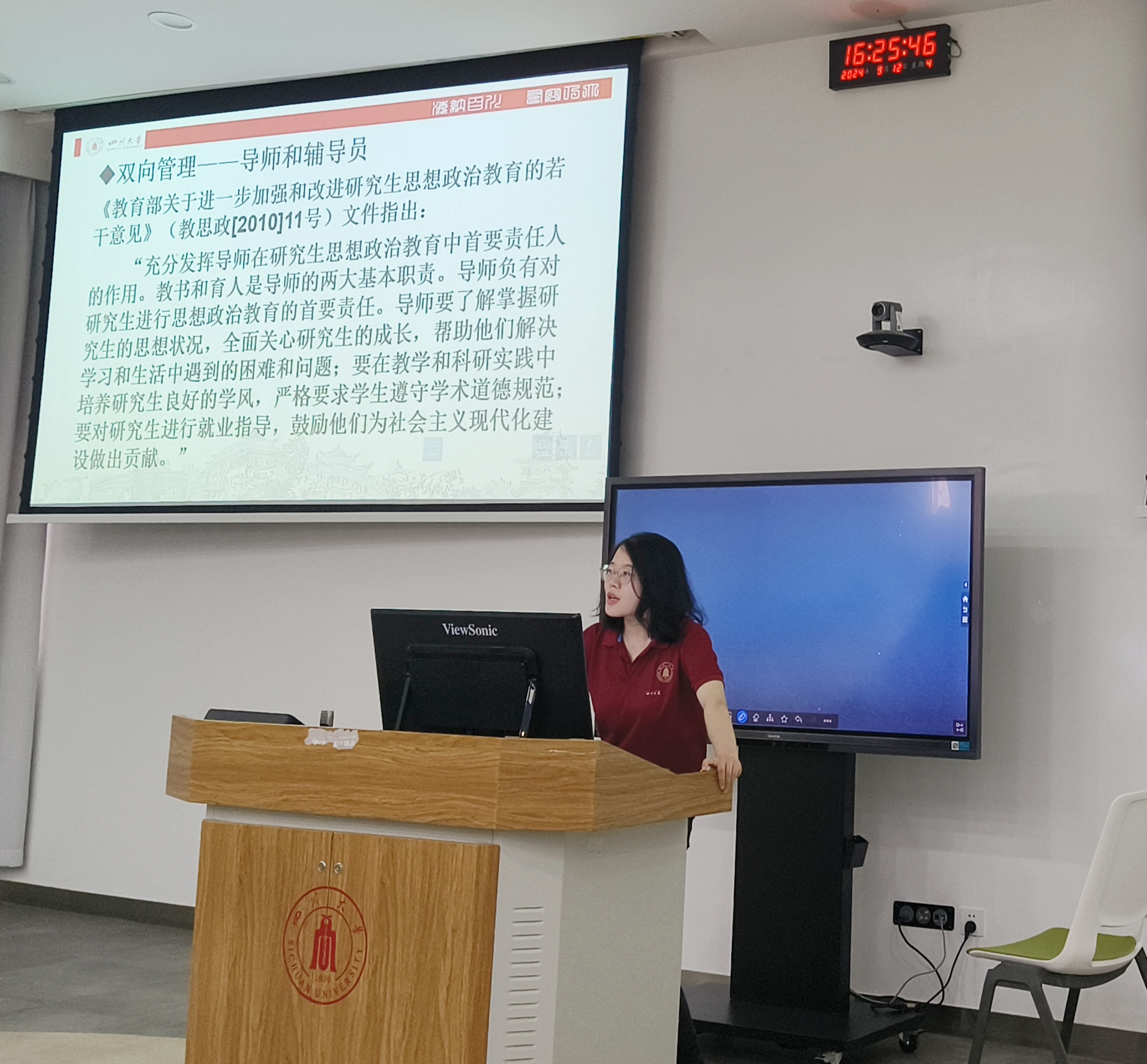 最后,2024级新生辅导员尚娇娇老师全面介绍了研究生日常管理工作。