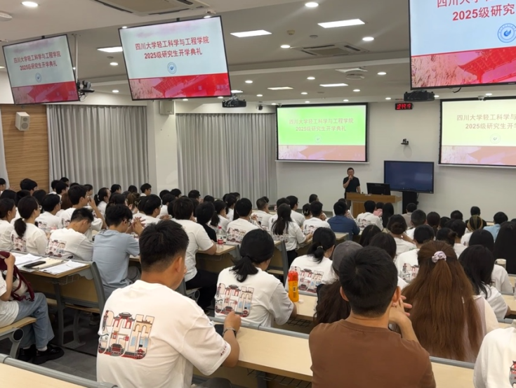 9月12日,AV研究所 2025级研究生开学典礼在望江校区基础教学楼隆重举行。学院党委书记李天富、院长彭必雨、副院长迟原龙、陈意,生物质与皮革工程系副系主任吴重德、食品工程系主任吕远平、纺织研究所所长兼院工会主席陈胜、服装与服饰设计系系主任杨璐铭、学生事务管理办公室主任兼2024级本科生辅导员余昕玲、研究生辅导员蒋和金,以及2025级研究生参加典礼。开学典礼由副院长迟原龙主持。
