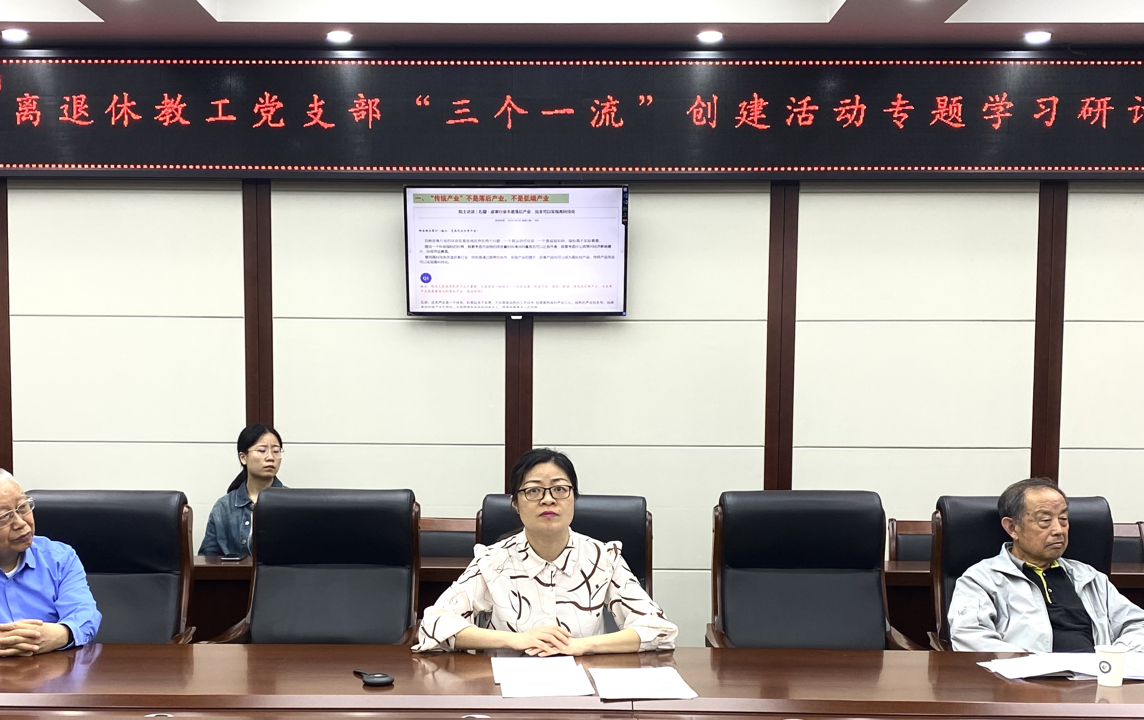 2024年4月18日,为贯彻落实校院《关于开展一流班子、一流组织和一流队伍创建活动的决定》文件精神,以高质量党建引领保障高质量发展,离退休教工党支部与纺织服装研究生第一党支部联建共建,在纺工附楼205会议室开展“三个一流”创建活动。