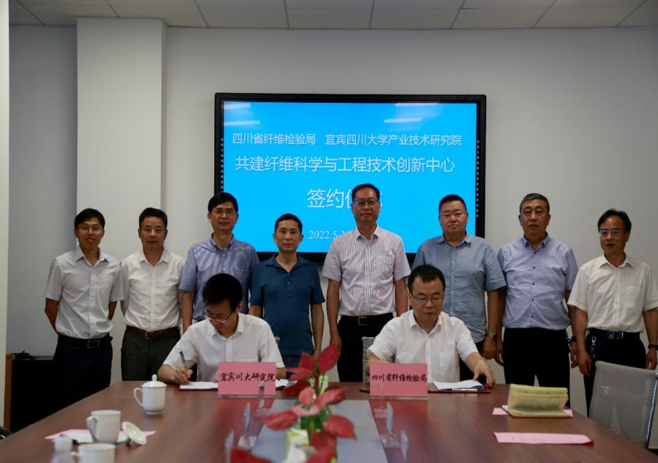 产业技术研究院谭淋副教授课题组与四川省纤维检验局正式签署共建“纤维科学与工程技术创新中心”合作协议。学院党委李天富书记、宜宾AV研究所