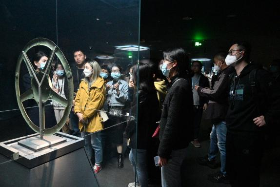 在讲解员的带领下,众人依次参观了综合馆及青铜馆。博物馆内展列的2.62米的青铜大立��3.95米的青铜神树��1.38米的青铜面具,均堪称独一无二的旷世神品;而以金杖为代表的金器,以满饰图案的边璋为代表的玉石器,亦属前所未见的稀世之珍�一件件瑰宝从多方面不仅展示了一个瑰丽多彩的古蜀世界,更展现了中华文明起源、发展脉络和灿烂成就。支部成员认真聆听讲解员的讲解,仿佛穿梭时空,置身于距今4000多年的古蜀文明之中,深刻体会了古蜀文化中兼容并包,渴求开放的发展理念,领略了古蜀匠人巧夺天工的技艺和浪漫的艺术想象与创造力,感受到了三星堆文明的深邃厚重、灿烂辉煌�