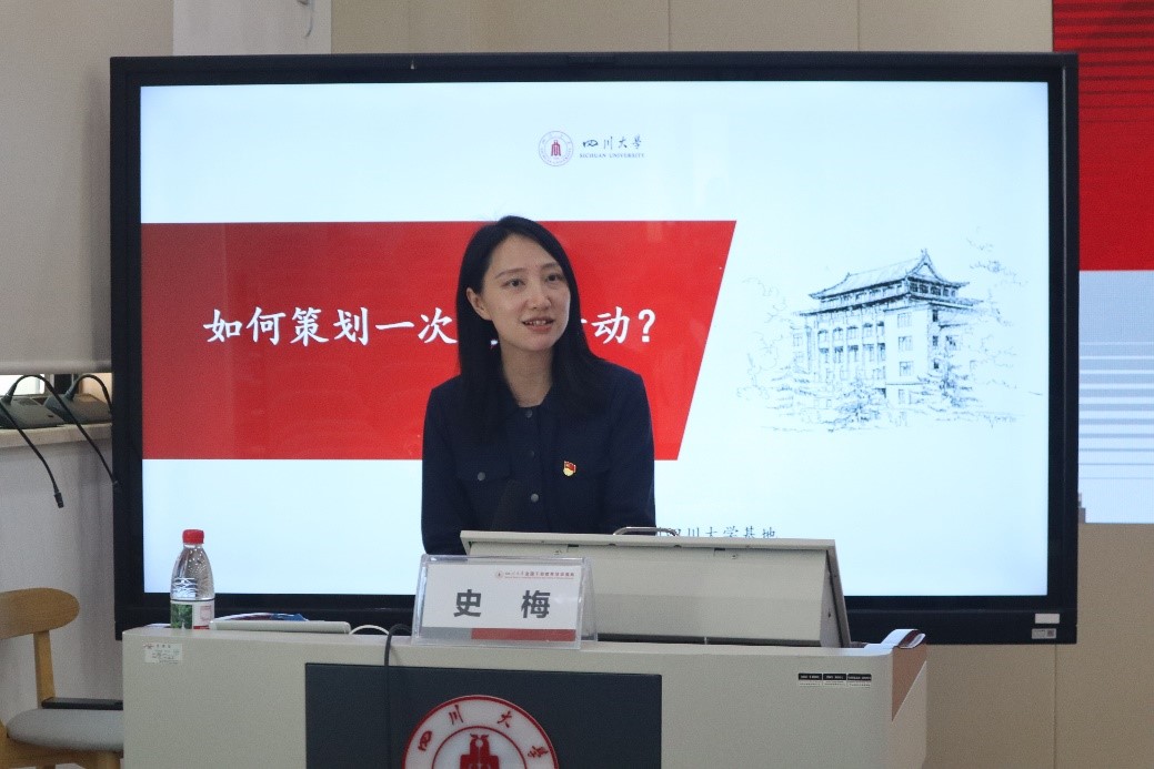 四川大学教育培训部第二党支部书记史梅就“如何策划一次支部活动”进行讲解,并组织模拟党员大会,随机选取三名学员组成支委,并与现场学员充分互动,围绕开展支部活动的难点及其原因展开深入交流,并就如何提升支部活动质量展开讨论�