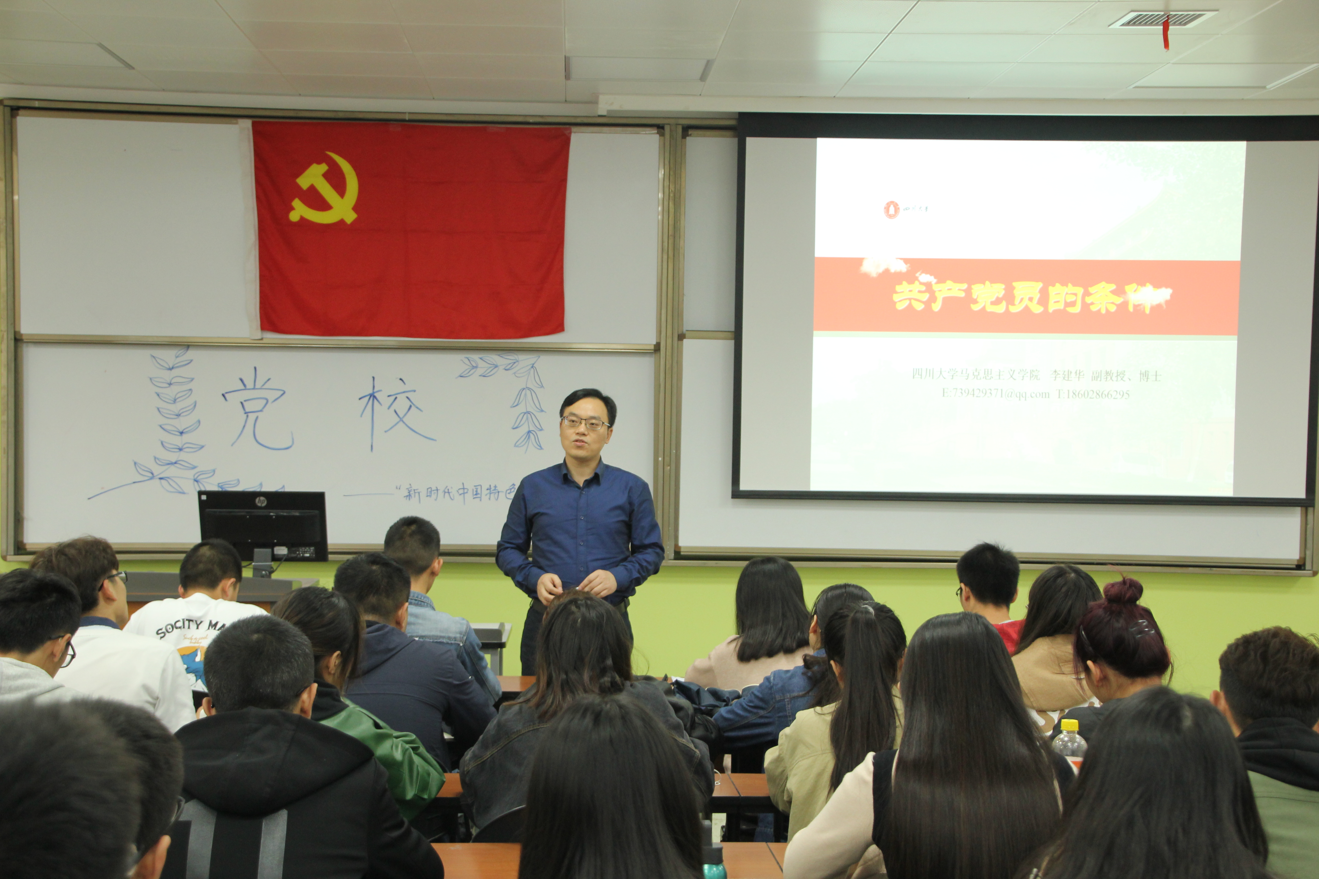 20181021日下�1500,四川大学党校第145期学生党员发展对象培训班第三讲在江安校区第一教学�B107教室顺利举行。本次授课人为四川大学马克思主义学院李健华副教授。李院长从入党的条件、优秀党员的要求、党员的权利和义务以及大学生党员的基本要求四个方面,详细地为同学们介绍了如何成为一名优秀的大学生党员�