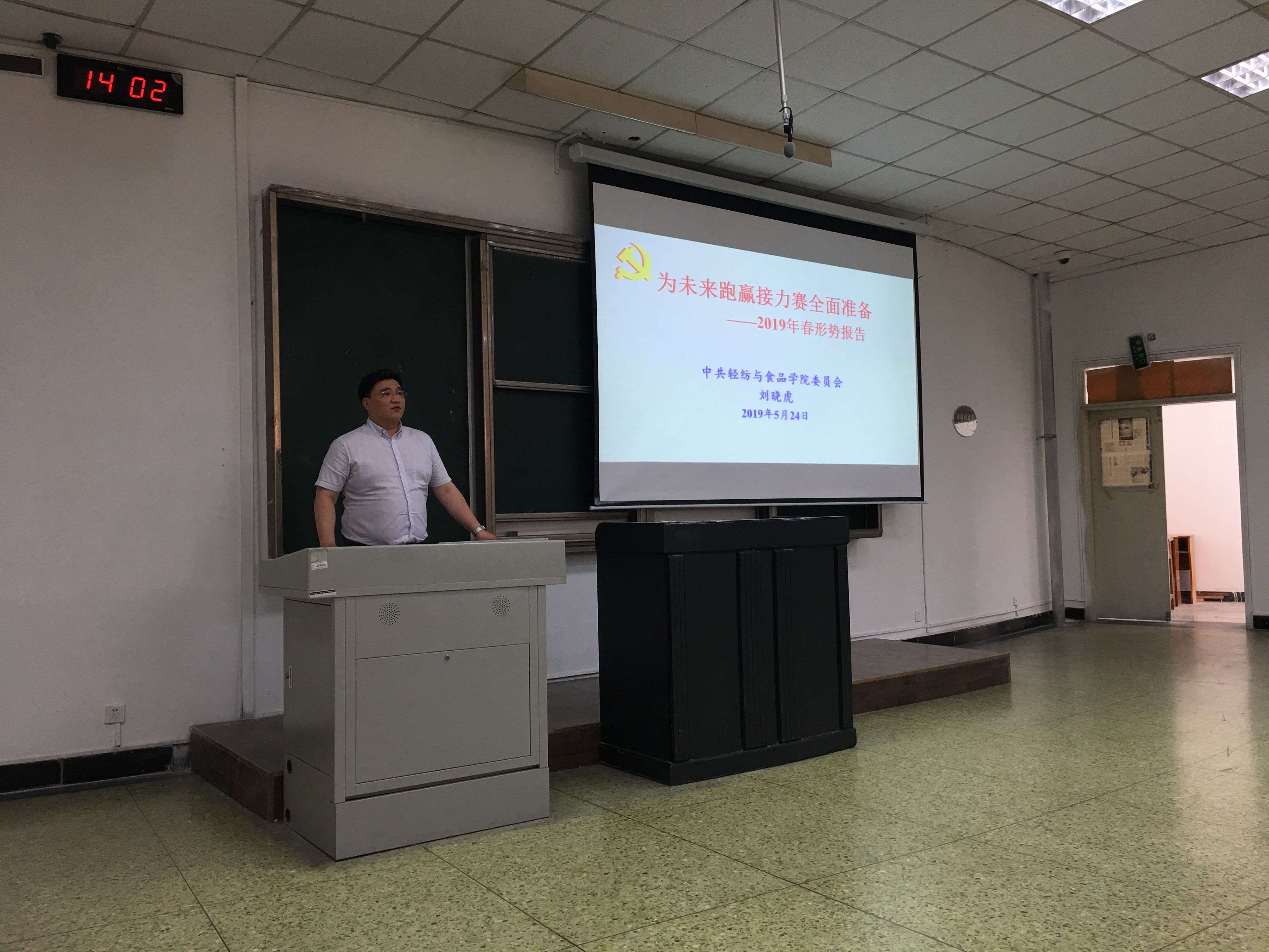 为全面深入学习传达习近平总书记在纪念五四运动一百周年大会上的讲话精神,结合学院目前面临的形势和任务,刘晓虎书记重点从“增负、诚信、担当、改革”四个方面与同学们进行了交流。