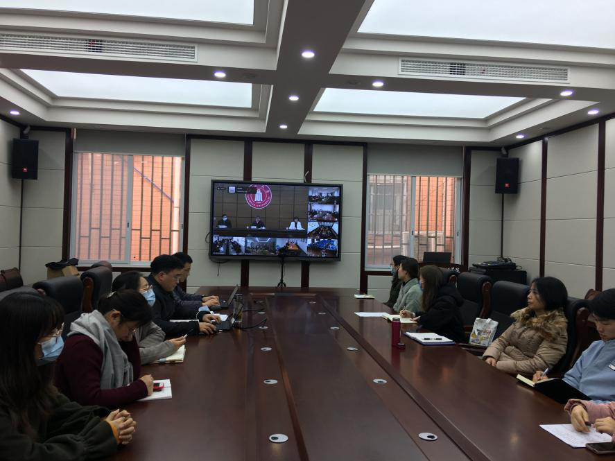 2020年12月24日,学校在望江校区明德楼召开基层党建工作总结会,校党委书记王建国、校党委副书记曹萍、郭勇以及学校相关单位负责人、全体专职组织员在主会场行政楼414参会。按照学校工作要求,学院党委刘晓虎书记、冯国涛副书记以及全体教工支部书记、学生支部书记在纺工附楼205会议室参加了分会场学习。本次会议由校党委副书记曹萍主持。
