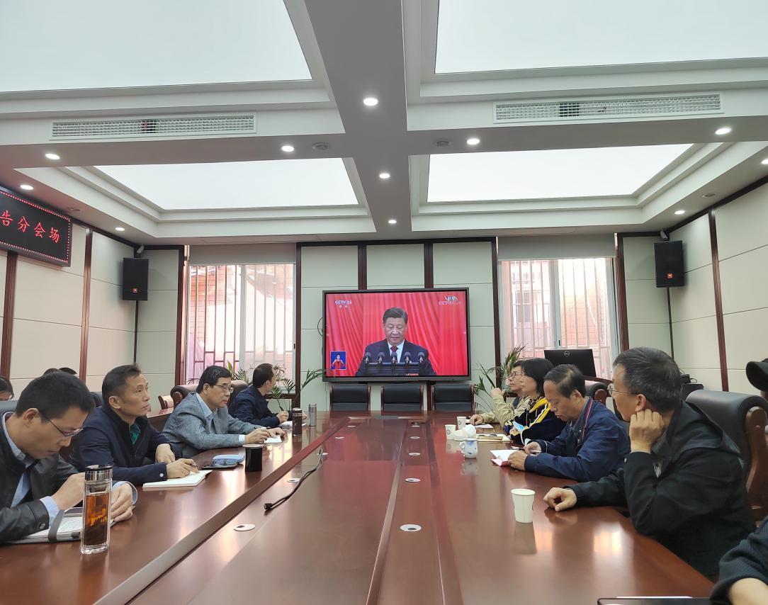 学院领导班子、党委委员、党支部书记在纺工附�205集中收看