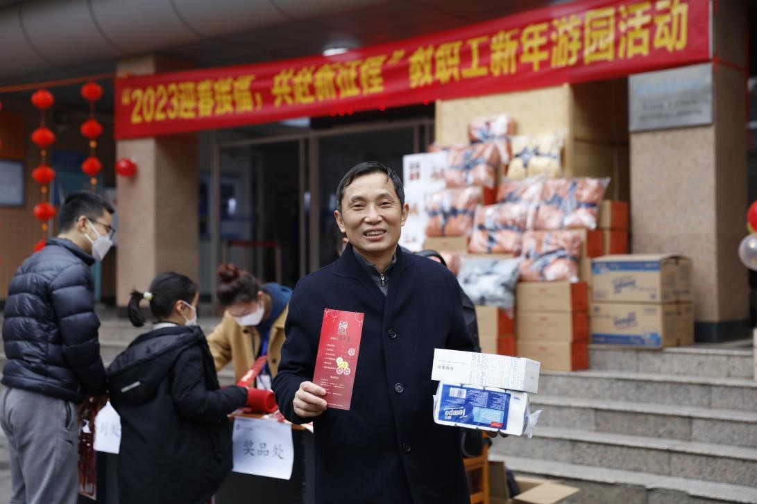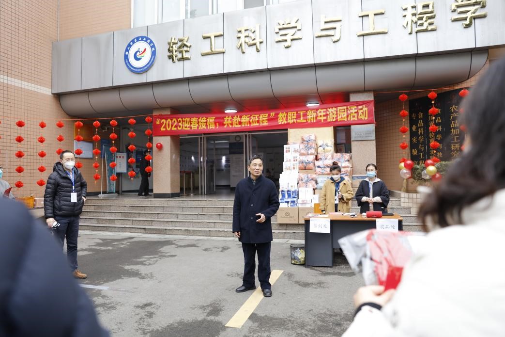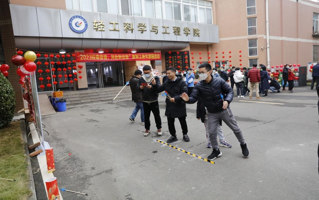为加强全院教职工交流和喜迎新春,学院工会�2023�1�11日下午,在学院纺工楼前小广场,举办了�2023迎春接福,共赴新征程”教职工新年游园活动�