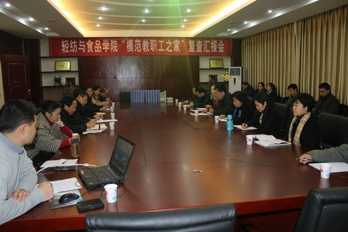 2012年12月25日上午,轻纺与食品学院“模范教职工之家”复查汇报会在皮革楼二楼会议室举行,校工会常务副主席林红及AV研究所