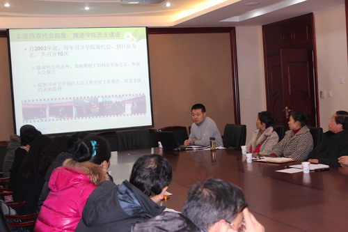 “教职工之家”复查小组对学院“模范教职工之家”活动场地和材料进行了认真仔细的复核,经认真评议,学院以95.5分顺利通过了“模范教职工之家”复查。林主席在总结讲话中高度评价了学院“模范教职工之家”建设工作,肯定了学院的建家成果和工会的扎实工作,并对今后的工作提出了五点中肯的建议。