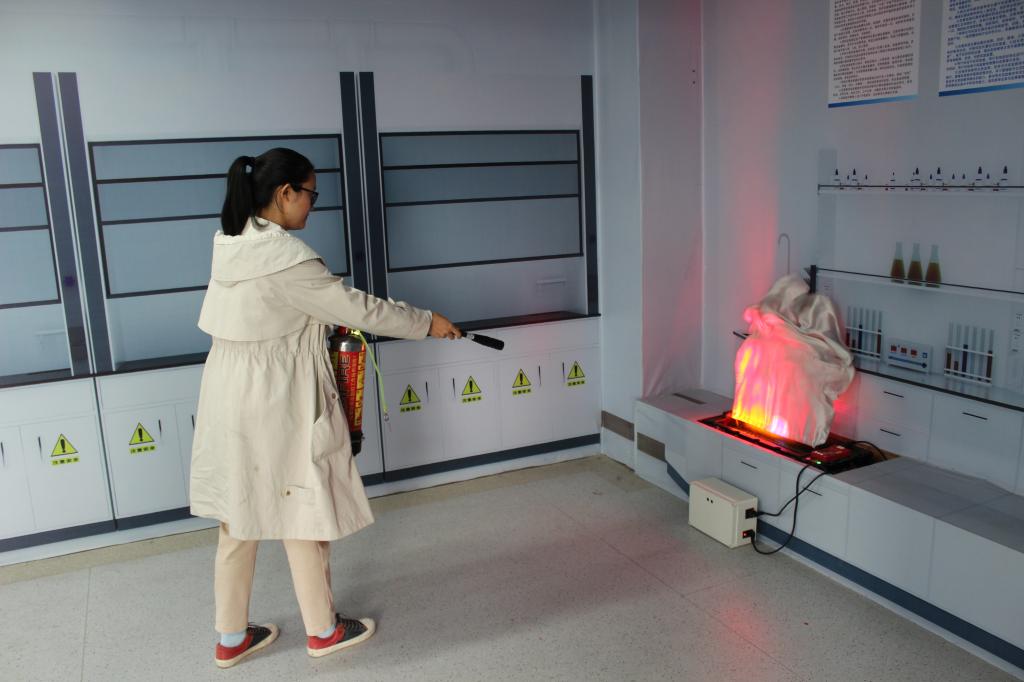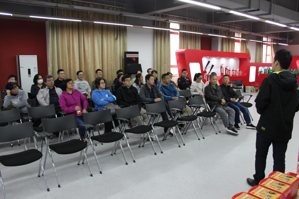培训分为2个阶段。第一阶段,培训老师详细讲解灭火器的类型,是否有效的判断,火灾类型与灭火器匹配对应,以及灭火器的使用方法,参加培训的老师认真完成了“模拟灭火”。