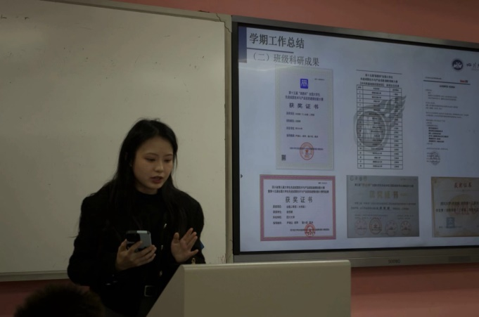随后,水利水电学�2020级江姐班团支书卫佳怡学姐和空天科学与工程学�2020级江姐班团支书蔡鑫宇学长作为老江姐班代表分享江姐班的建设经验。卫佳怡学姐从成绩与科研成果、红色基因传承、班级建设思路三个方面进行分享,强调大家在班级建设中注重的“团结协作、求实创新”的理念。蔡鑫宇学长从志空天、敢争先、兴人文、树标杆四个方面分享了班级建设经验,并列举了一些成功的文化活动和学术交流活动的案例,激励同学们勇于尝试,勇于创新,勇当标杆,为班级发展注入新的活力和动力�他们的分享不仅对未来的江姐班建设提供了宝贵的经验,也给了同学们很多启发和指导,为2022级轻化工程专�03�江姐班的建设提供了蓝图范本�