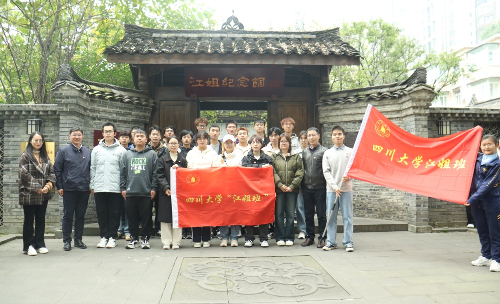 为了深入贯彻习近平总书记关于传承红色基因的系列重要讲话和指示批示精神,深挖学校红色教育资源,落实立德树人根本任务,我院本科2022级轻化工�103班经学院培育推荐和学校评审被授予2023年“江姐班”称号,为本年度全校5个新获批的“江姐班”之一�2023�11�24日下�14:30�103班全体同学在四川大学望江校区江姐纪念馆参加新入�“江姐班”授旗仪式暨交流会。校党委副书记李正赤、宣传部、教务处、学工部、研工部、校团委等相关部门负责人,我院党委冯国涛副书记�2022级本科辅导员贺婷老师一同参加了本次活动�