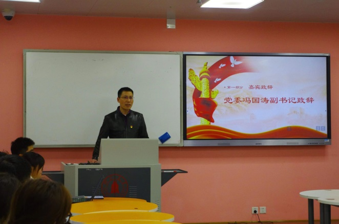 首先,学院党委冯国涛副书记致辞。冯书记围绕如何建设�“又红又专”的江姐班提出三点意见,即“江姐班”学生要再价值塑造、能力培养、知识传授方面争做标兵与表率。冯书记表示,要以主题教育与党员培育为价值塑造的重要抓手推动江姐班思想建设建设,要以学习能力与创新能力为能力培养的核心要素推动能力培养,要以五育并举、全面发展为知识传授的重要途径推动综合素质提升,培养德智体美劳全面发展的综合型人才�