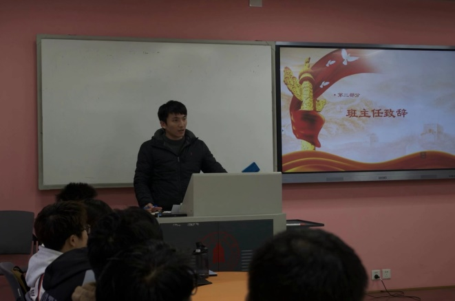 随后�103班班长王梓奇同学从“不忘初心、使命当先”、“勤勉致知,学习优先”、“公益为本,奉献争先”三个方面为大家做了班级情况的整体介绍。团支书陈吉同学从思想建设方面介绍了“聚心爱党,踔厉奋发”计划;学习委员肖璐汶同学从学风建设方面介绍�“勤学共勉,筑梦启航”计划;青志委员翟冬梅同学从促进全面发展方面介绍了“青年追梦,自立自强”计划。通过全体班委的介绍,让大家清晰了班级初步建设方案�