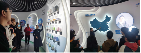 为了配合做好学校的参观安排,新希望公司的企业导师们早早在工厂等候。全体师生到达新希望公司后,跟随企业导师的带领与讲解,先后参观了公司的文化走廊、研发中心等,实地了解到乳制品产业的发展历程以及乳制品加工技术。