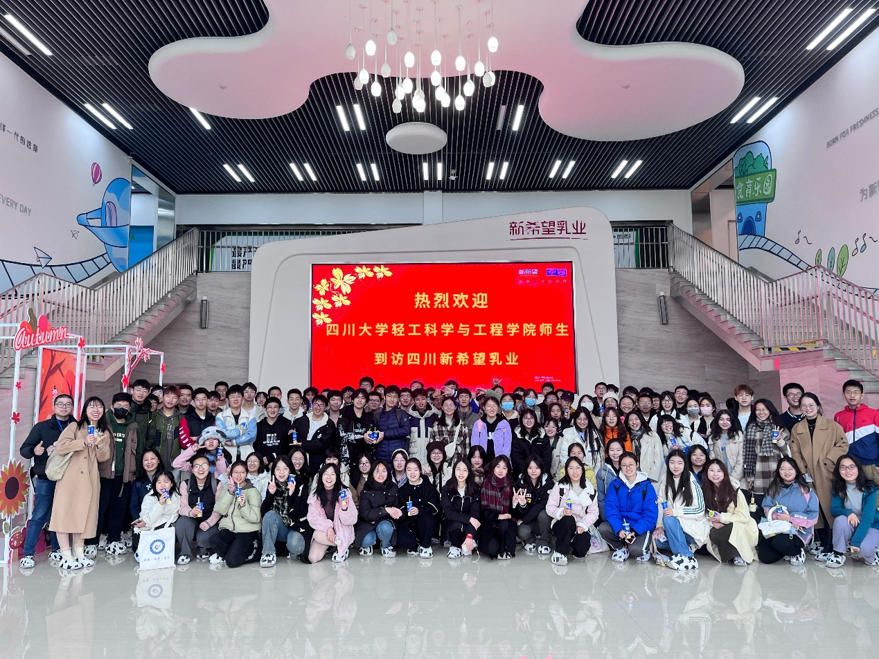 为进一步助力高校人才培养,提高学生对食品行业的认知,增强学生对专业的理解,2023年12月2日,2023级工科试验班(食品健康与安全)的130余名本科生在吕远平教授以及辅导员贺婷、贾欣驹、李有真老师的组织带领下,赴位于郫都区的四川新希望乳业有限公司开展专业认知实习活动。