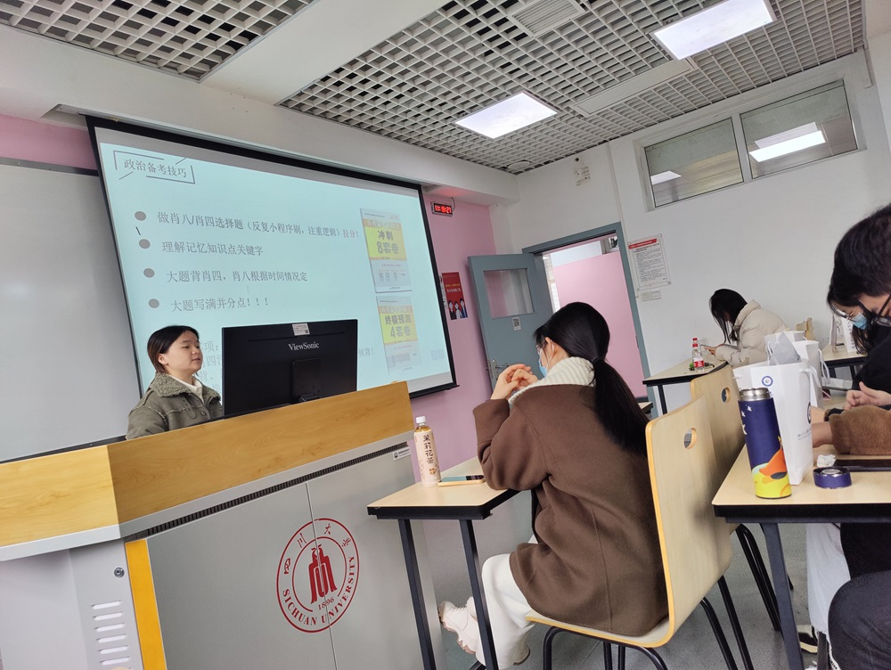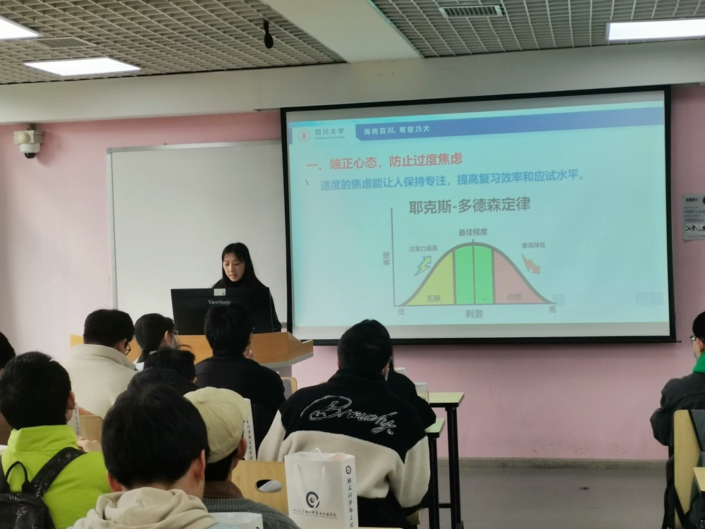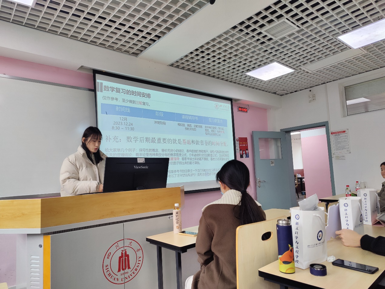 为鼓�考研学子士气、缓解备考压力�坚定考试信心�2023128日上午,学院于望江基�A315教室举行2020级本科考研冲刺交流会暨冬日送温暖活�学院党委副书记冯国涛老师2020级辅导员余昕玲老师以及学院思学中心考研朋辈导师代表于佳艳、谭淋嘉同学出席本次活动