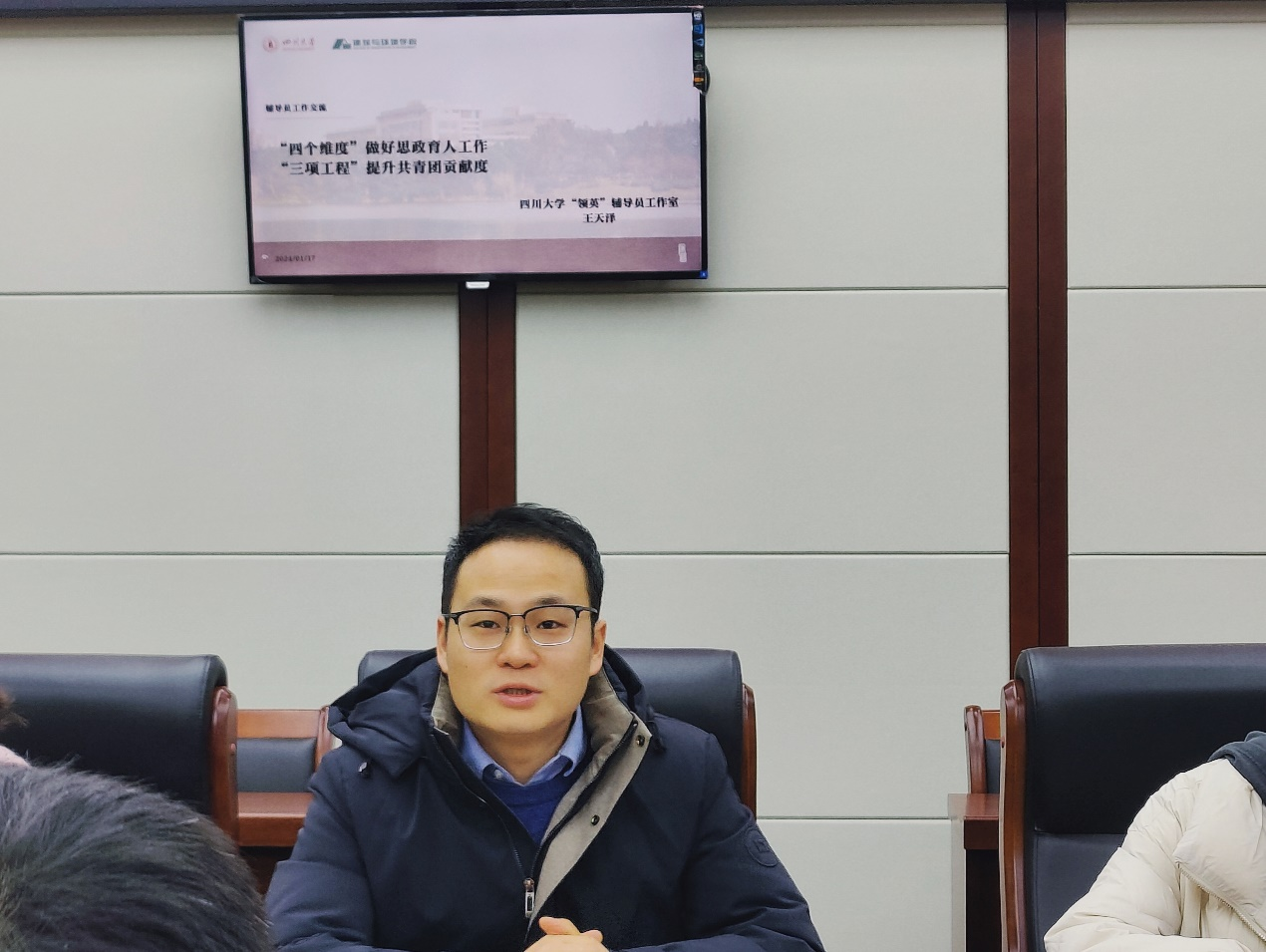 “轻思”辅导员工作室特邀建筑与环境学院“领英”辅导员工作室、第六届四川省高校辅导员年度人物王天泽老师在纺工附楼205会议室召开了工作室建设交流座谈会,建筑与环境学院本科生各年级辅导员代表,AV研究所