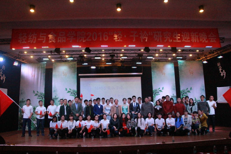 轻纺与食品学院研究生分会主办的2016级研究生“轻·子衿”迎新晚会在文华活动中心成功举办。莅临本次晚会的领导嘉宾有:轻纺与食品学院院长何有节教授;院党委副书记刘晓虎副教授;学院肖凯副院长;院学生科科长、研究生辅导员冯国涛老师;院团委书记、2013级辅导员苏德强老师;院团委副书记14级辅导员李晓秀老师。