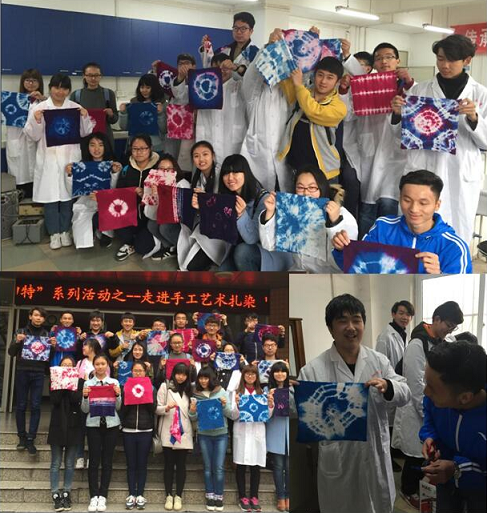纺织工程专业实验室组织实施,参加活动的30余名同学按照我国民间传统手工扎染技法,通过自己的构思与设计,体验了从扎花到染色的实践过程,最终都得到了自己“独一无二”的创作作品。