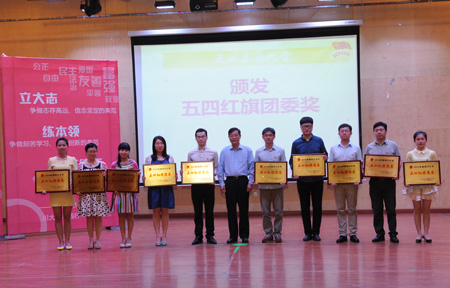纪念“五四运动”96周年暨五四表彰大会在望江校区文华活动中心二楼音乐厅隆重召开。校党委常务副书记罗中枢教授,校党委副书记李向成教授,学校有关部门负责人,各学院分管学生工作的党委副书记、分团委书记,学校先进青年典型和优秀团员、团干部、基层团支部书记代表,以及青年教师代表和来自各部门、学院的青年代表参加了大会。
