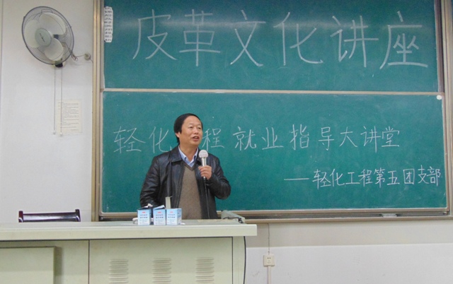 生物质与皮革工程系的宣传片以及EOCO皮革公司等知名企业的皮革制作视频,并为同学们解读了我校轻化工程的培养目标以及未来职业发展的可能性。在本次讲座的尾声,他为同学们对于专业就业等方面的疑问做出了详细和耐心的解答,告诉大家“待遇=能力,收入=付出”,并对同学们今后的学习生活表达了期待和祝福,讲座在一阵热烈的掌声中落下帷幕。