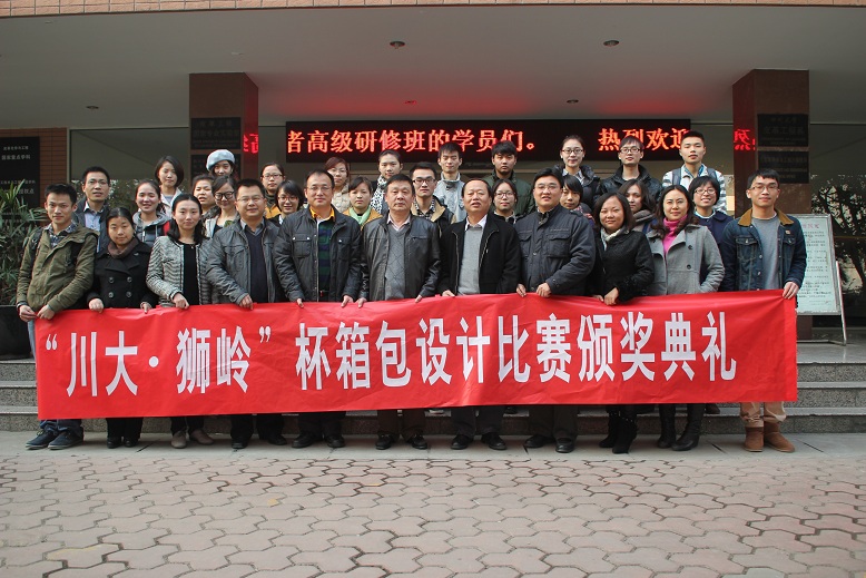 在皮革行业革制品设计方向的人才培养作出的努力表示感谢。赵局长全面介绍了花都区的产业集群,尤其是狮岭镇皮革皮具城,它是集箱包的设计、生产、销售、运输为一体的产业集群优势,希望革制品设计方向的有志之士能到花都狮岭发展,为行业的发展作出更大的贡献。紧接着,刘晓虎副书记宣读了2013年度“川大•狮岭”杯箱包设计比赛的获奖名单,到场的各位领导与嘉宾为获奖同学一一颁奖。最后2010级革制品设计专业杨树怀同学作为获奖学生代表发言。颁奖典礼结束后,参会领导、嘉宾与全体获奖同学在皮革楼前合影留念。
