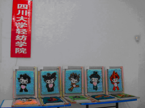 其中,银奖由来自05级纺织一班的吴娟(作品名:向奥运献礼之福娃晶晶)和竺钱旭(作品名:奥运标志)获得,铜奖获得者分别有薛清华(作品名:向奥运献礼之福娃贝贝)、赵玲(作品名:向奥运献礼之福娃欢欢)、张芳(作品名:向奥运献礼之福娃迎迎)、杨燕(作品名:向奥运献礼之福娃妮妮)、孟娇(作品名:可爱的小熊)、杨珊(作品名:小丑鱼)、郭建顺(作品名:可爱淘)和张伟(作品名:恋水)。