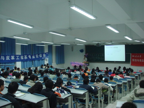 本次论谈会主要面向轻化工程和轻工生物技术专业举办,力求使07级同学更了解并热爱自己的专业,使06级同学能对自己专业的各方向有更深层的了解从而选择适合自己的专业方向。论谈会邀请了四名大四学长与06、07级的同学们进行交流。他们是来自04级的轻化工程制革方向的王亚楠、轻化工程皮革商贸方向的易秋菊、轻化工程设计方向的何露以及来自04级轻工生物技术的文潜虎。四名学长在论谈会开始后分别上台“传授”了他们的学习经验以及对如何对待自己的专业,如何选择发展方向阐述了自己的观点。他们各抒己见,并用PPT的形式来使整个讲述过程生动灵活。最后,进入自由提问环节,06、07级的同学们纷纷走上前去,围着学长们,提出自己的疑问让学长们解答或进行帮助。