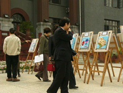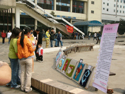 2003级纺织工程于23日、3月30日分别在望江校区西区活动中心和行政楼前展出了上学期末完成的编织装饰挂毯习作,获得了广大师生的关注和好评。